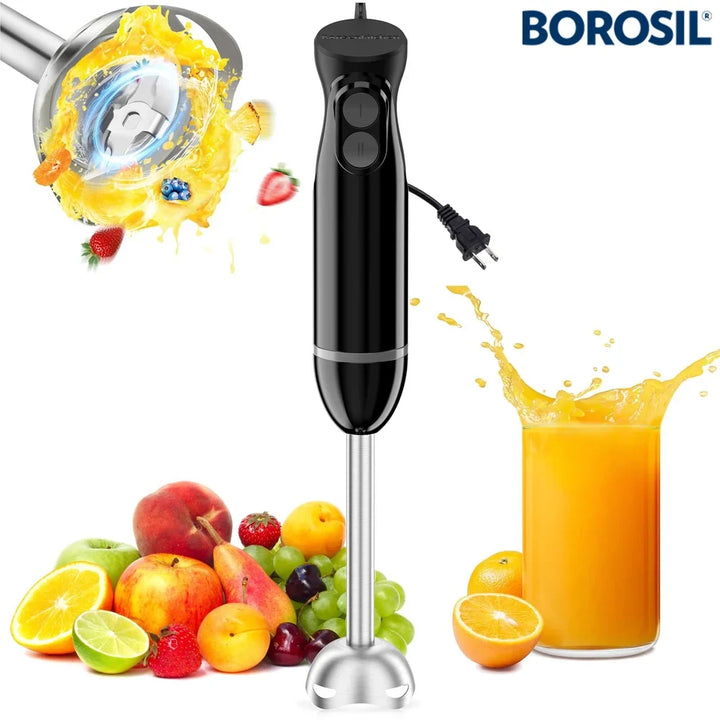Borosil Masterblend SW22 Hand Blender With Chopper, Electric Hand Blender, Dual Speed Options, Stainless Steel Blades, For Blending & Pureeing, 500 W, Black