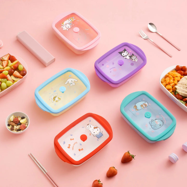 Hello kitty air tight food container 800ml capacity borosilicate glass 0° to 180° temperature tolerance Food grade material microwave and oven safe