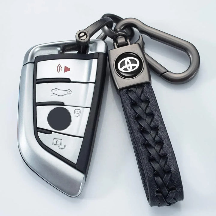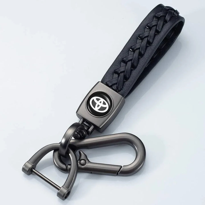 Leather Car Keychain Motorcycle Woven Strap Braided Rope Key Chain for Suzuki, Honda, Toyota Car Auto Accessory Key Ring with 360 Degree Rotatable D-ring